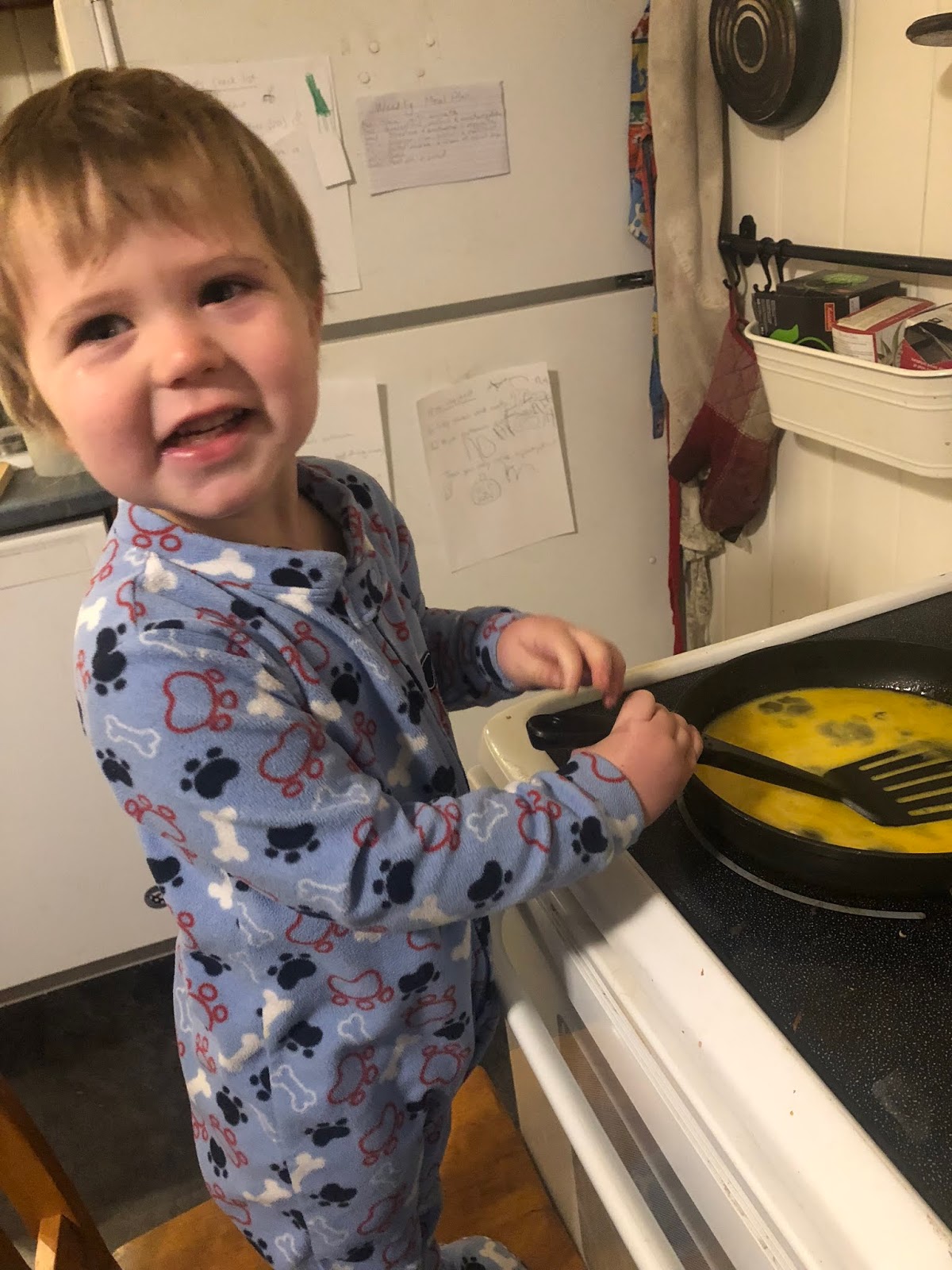 October was also the month that I realized my baby was becoming a big brother, and I had lots of feelings about that. Look how big he looks at only 28 months old, making scrambled eggs for the family!