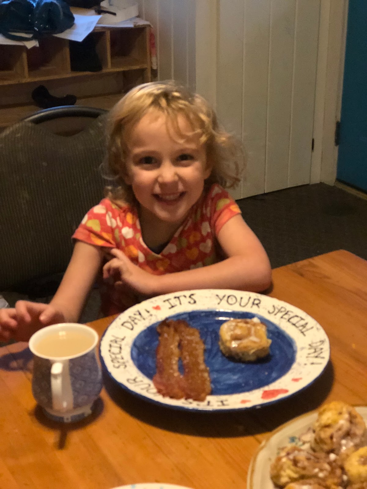 Anna turned five! A whole hand. Unbelievable. We celebrated with bacon and cinnamon rolls for breakfast and she politely, quietly rejected the cinnamon roll. And later her cake. Her lack of sweet tooth stuns me sometimes. Are we even related?
